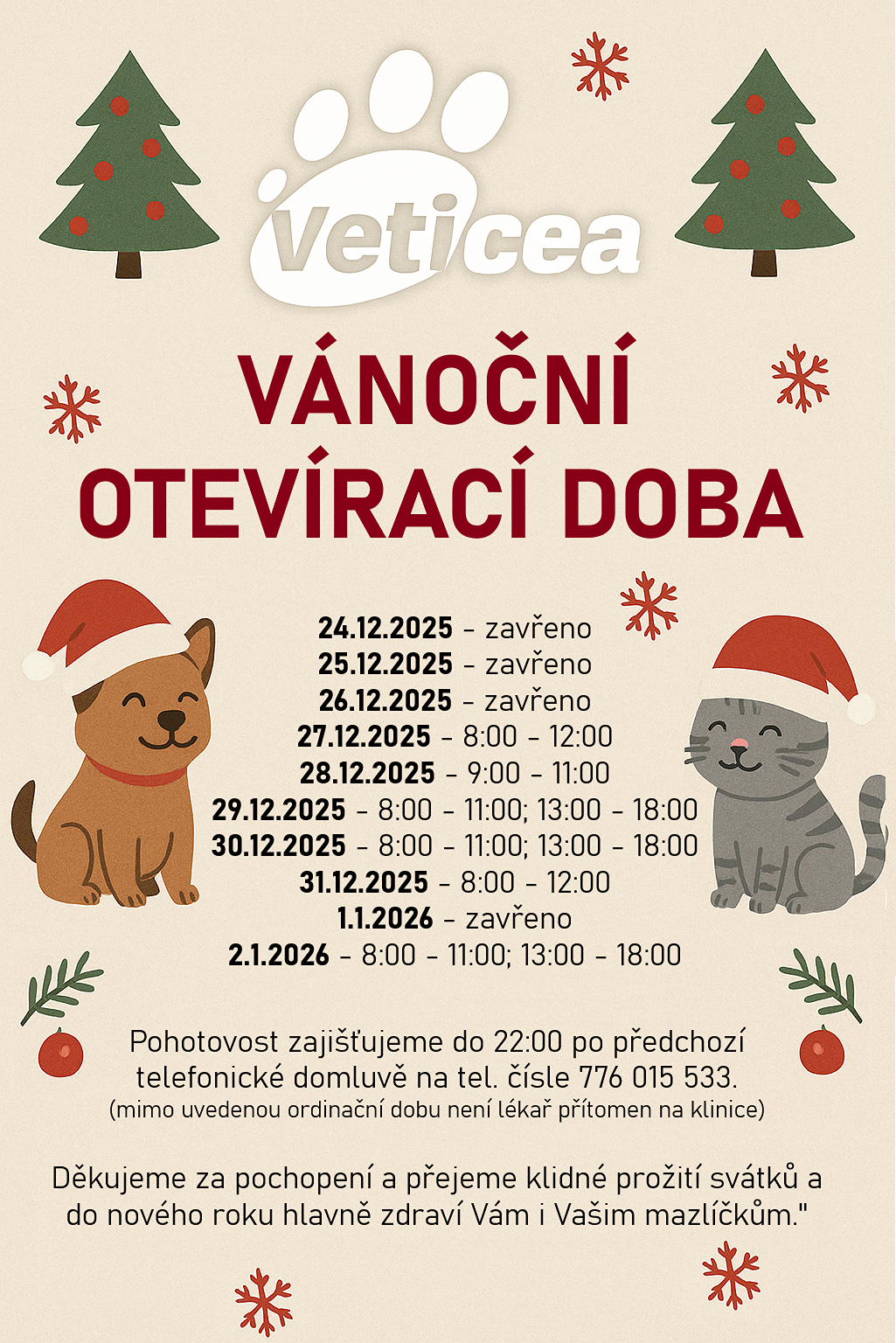 Ordinační hodiny Vánoce 2025
